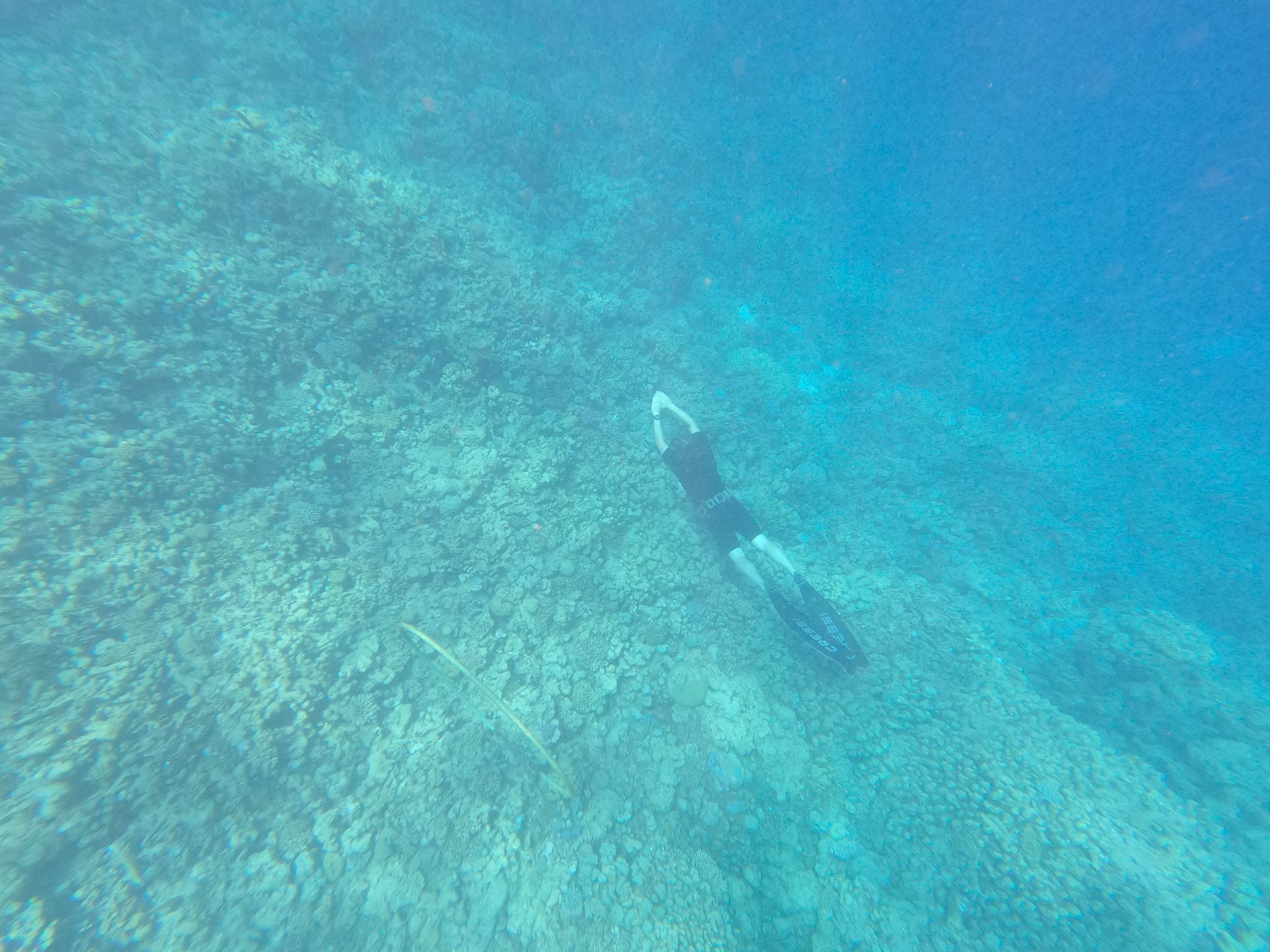Freediving with a friend on the coast at Soma Bay, Egypt, 2024.